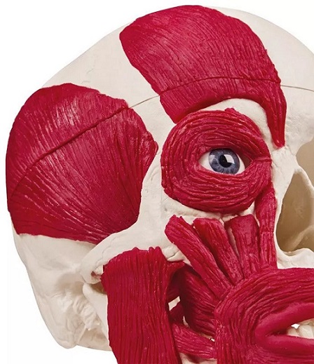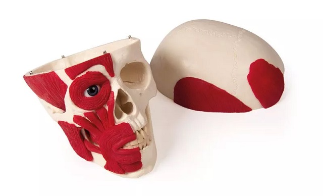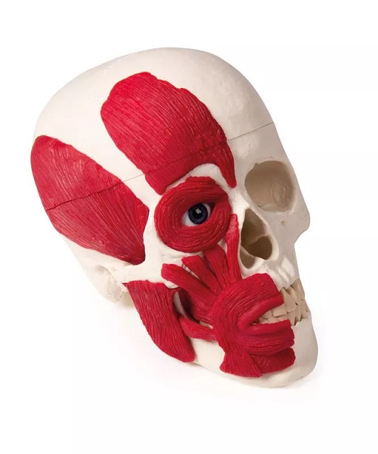 Mudel kolju lihastega näitab inimese koljut, mille ühel poolel on kõige olulisemad pealihased. Alalõug on liikumatu. Kolju ülemist osa saab avada ja eemaldada.