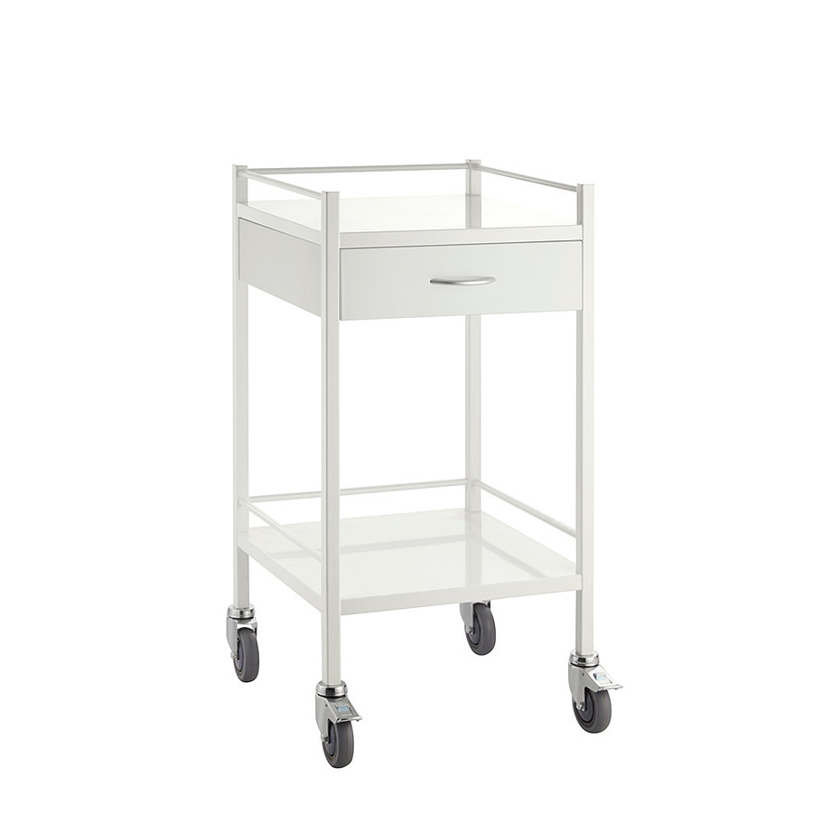 Värvitud tugevast roostevabast terasest raamiga mitmeotstarbeline instrumendilaud on saadaval 2 tasapinna ja kuni 3 sahtliga. Desinfitseerimisvahendite kindel. Antud mitmeotstarbelist käru saab näiteks kasutada meditsiiniseadmete hoiukohana süstimisprotseduuride või sidemete vahetamise ajal. Võimalik valida 1, 2 või 3 sahtliga mudelit. Laual on 4 ratast, millest kahel on pidurid.