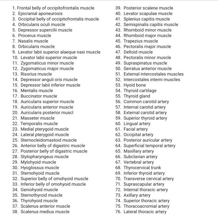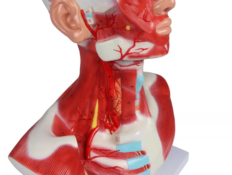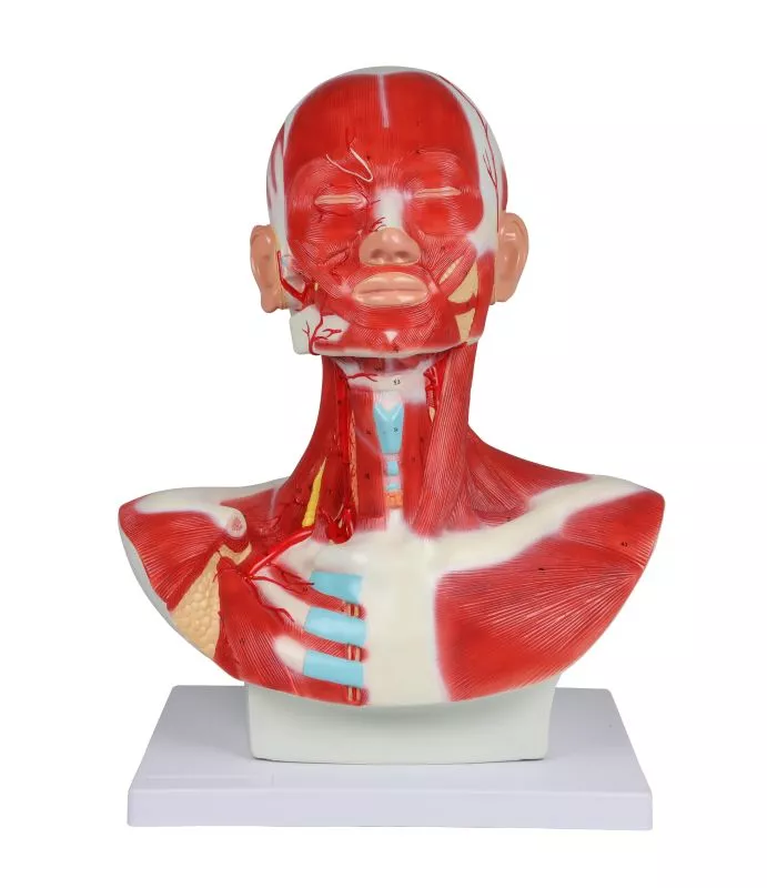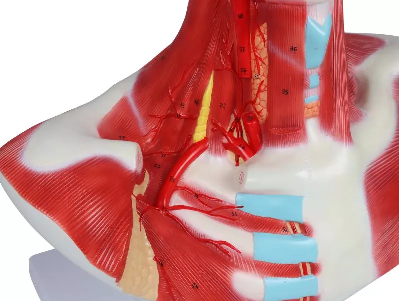 Pea-, kaela- ja rindkerelihased, 1-osaline mudel kujutab pea, kaela ja ülemise rindkere piirkonna lihaseid. Hästi on esitatud nii pindmised kui ka süvalihased, samuti rangluualuse arteri (arteria subclavia) ja unearteri (arteria carotis) kulgemine.