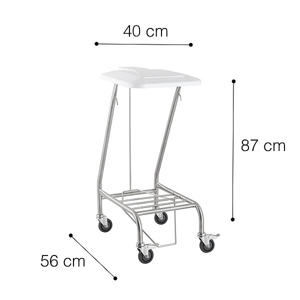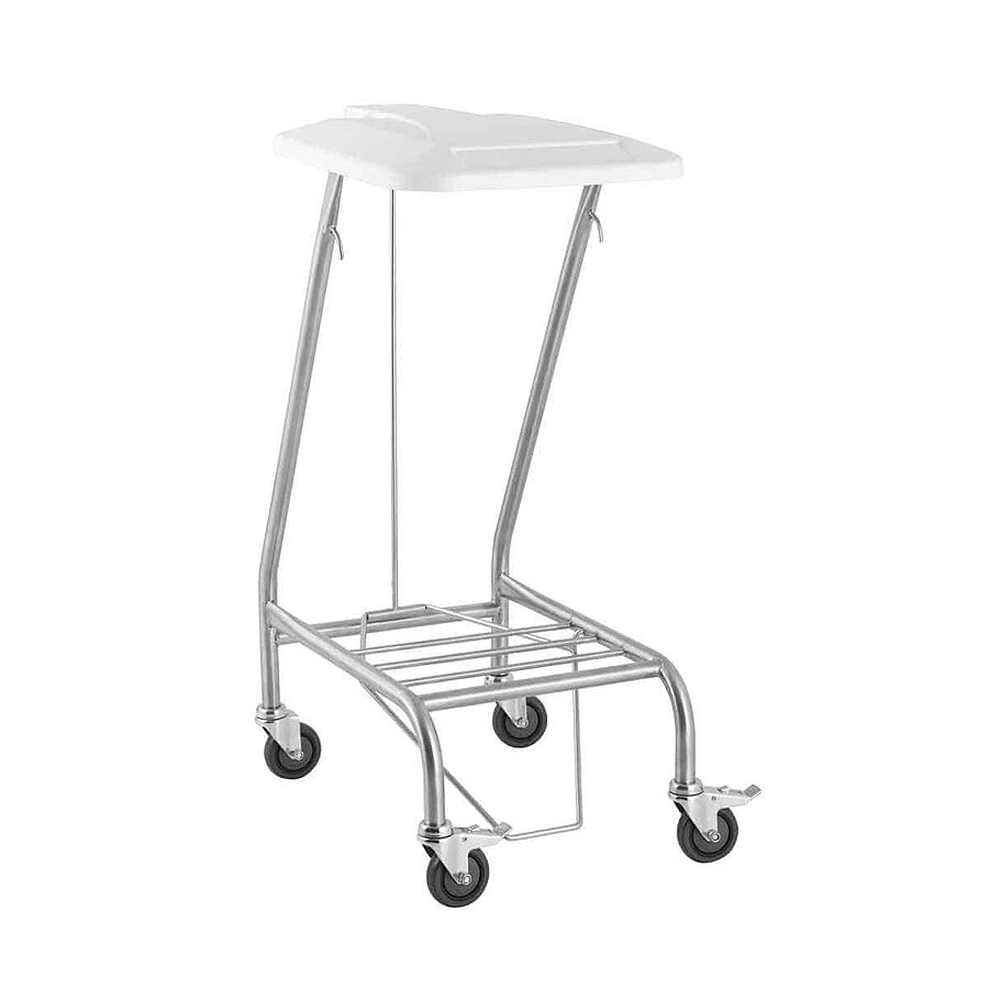 Mobiilne pesukäru sobib ideaalselt hügieeniliseks pesu transportimiseks haiglates, kliinikutes ja hooldekodudes. Selle vastupidav roostevabast terasest konstruktsioon ja integreeritud hoiuriiul tagavad suure kandevõime ja praktilise ruumi värskete pesukottide jaoks. Kaant saab jalgpedaali abil hõlpsasti avada, võimaldades kontaktivaba ja hügieenilist kasutamist. Neli sujuvalt liikuvat ratast, millest kaks on lukustuspiduritega. Avatud disain lihtsustab puhastamist ja säilitab maksimaalse hügieeni.