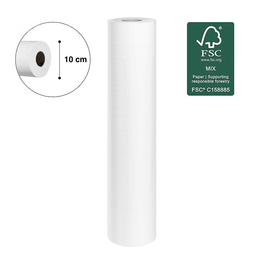 Protseduurilaua kattepaber rullis. Ühekordseks kasutamiseks mõeldud 2-kihiline paber kaitseb läbivaatuslauda mustuse ja niiskuse eest, pakkudes samal ajal mugavust ja kaitset patsientidele. Väga hästi imav. Rulli laius 50 cm ja läbimõõt ainult 10 cm. Pikkus 48 meetrit. Perforeeritud iga 38 cm järel.