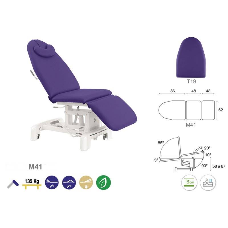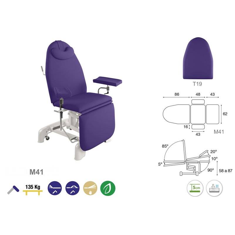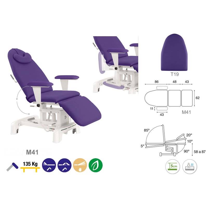 3-osaline hüdrauliline protseduuritool. Tooli raam on valmistatud metallist ja kaetud valge värviga. Tooli kõrguse, pea- ja keskosa on reguleeritavad hüdrauliliselt. Jalaosa reguleeritav manuaalselt. Toolil on rattad toote kergeks liigutamiseks ühest ruumist teise. Lamamisosa on polsterdatud ja kaetud kergesti puhastatava ja desinfitseeritava vinüülkattega. Toode on saadaval erinevate käetugedega. Lisana võimalik saada peaosasse näo ava. Saadaval 25 erinevas värvitoonis.