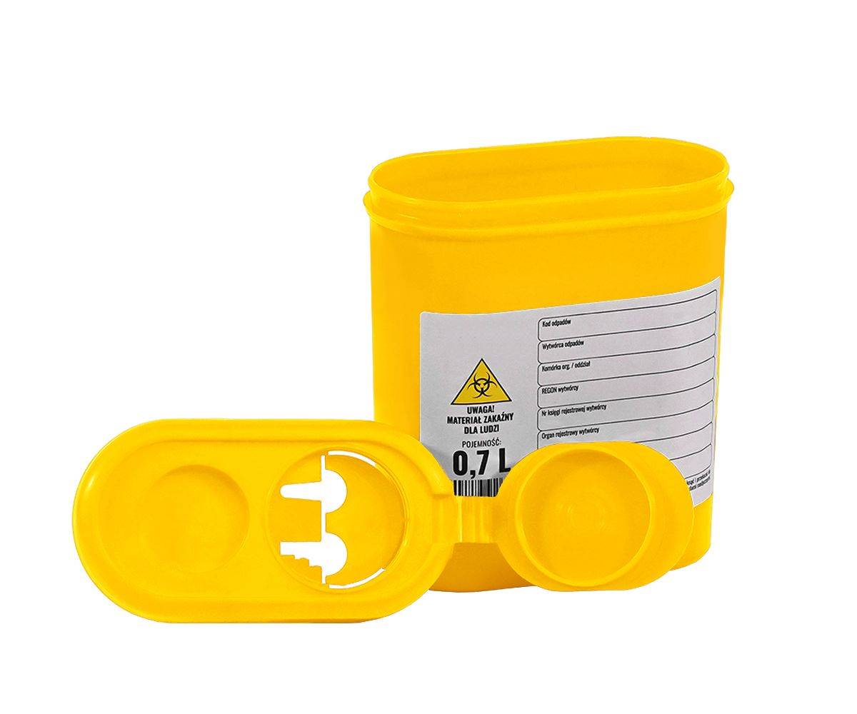 Riskijäätmete konteiner kaanega on ettenähtud meditsiiniliste teravate esemete ja saastunud jäätmete ohutuks kõrvaldamiseks ja nendega seotud vigastuste riski minimeerimiseks.