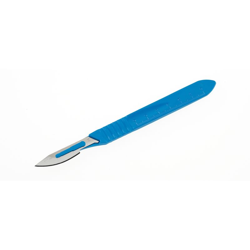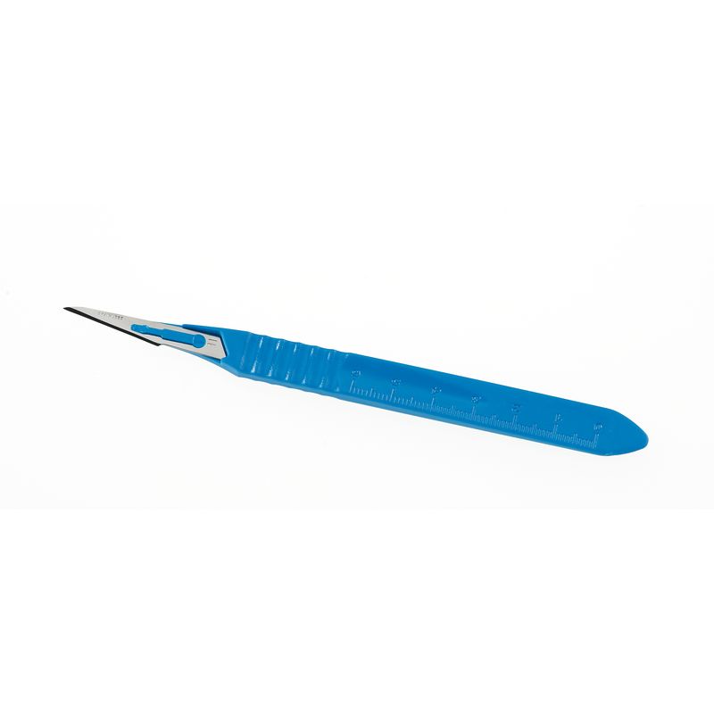 Steriilsed ühekordseks kasutamiseks mõeldud skalpellid. Laser kontrollitud roostevabast terasest tera. Tera kaitsega. Anatoomiline plastikust käepide. Saadaval erinevates suurustes (10, 11, 12, 15, 20, 21, 22, 23 ja 24). Pakendis 10 tükki.