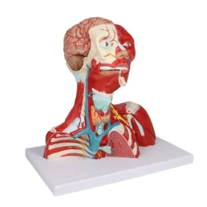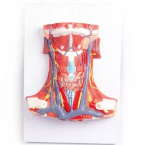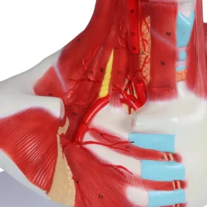 Elusuuruses kaela anatoomiline mudel kujutab inimese kaela ventraalsest vaates, näidates suurepäraselt peamisi lihaseid, veresooni, närve ja näärmeid. Paigaldatud alusele. Suurus:
