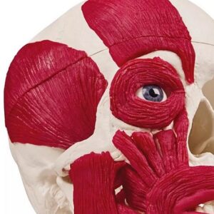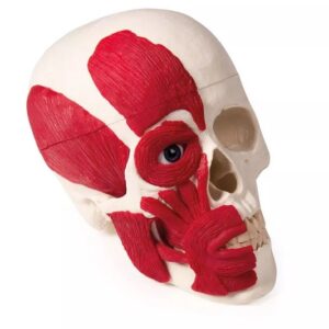 Mudel kolju lihastega näitab inimese koljut, mille ühel poolel on kõige olulisemad pealihased. Alalõug on liikumatu. Kolju ülemist osa saab