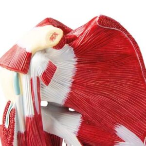 Õla mudel, millel on põhjalikult näha õla lihaseid, sidemeid ja luid. Erinevate lihaste osades on võimalik jälgida sügavamal olevaid lihaseid