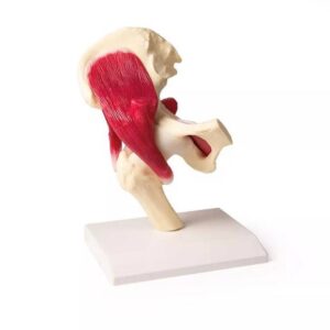 Inimese puusaliigese mudel elusuuruses koos kõigi oluliste lihaste ja sidemetega. Liigesel on piiratud liigutatavus. Mudel on alusel. Suurus: 13 x